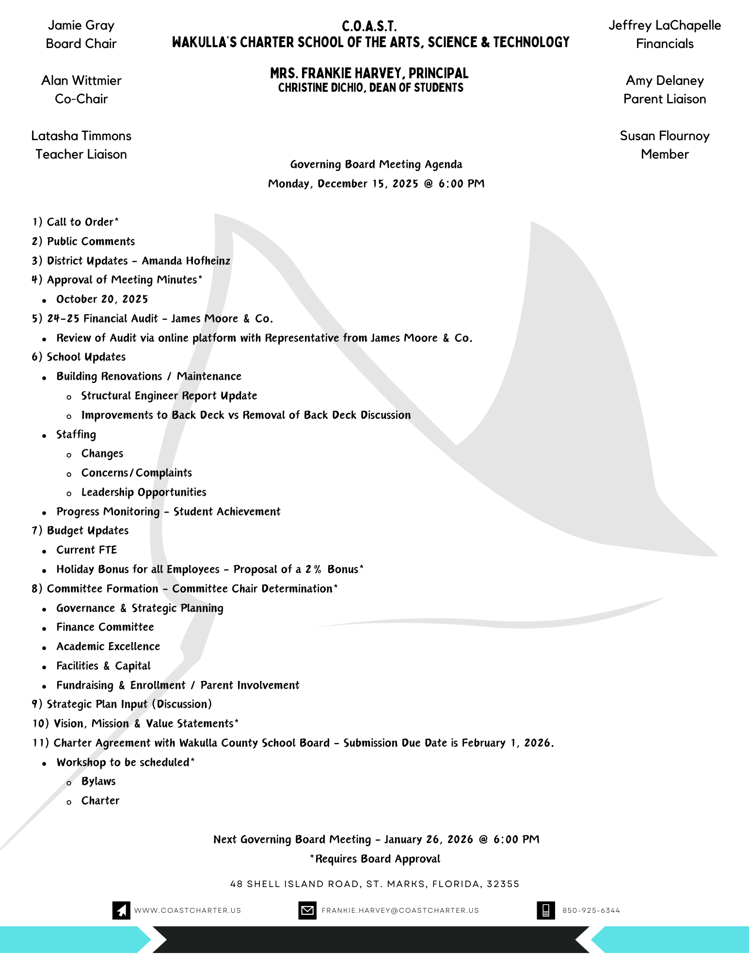 *Meetings are held at COAST Charter School at approximately 6:00 PM